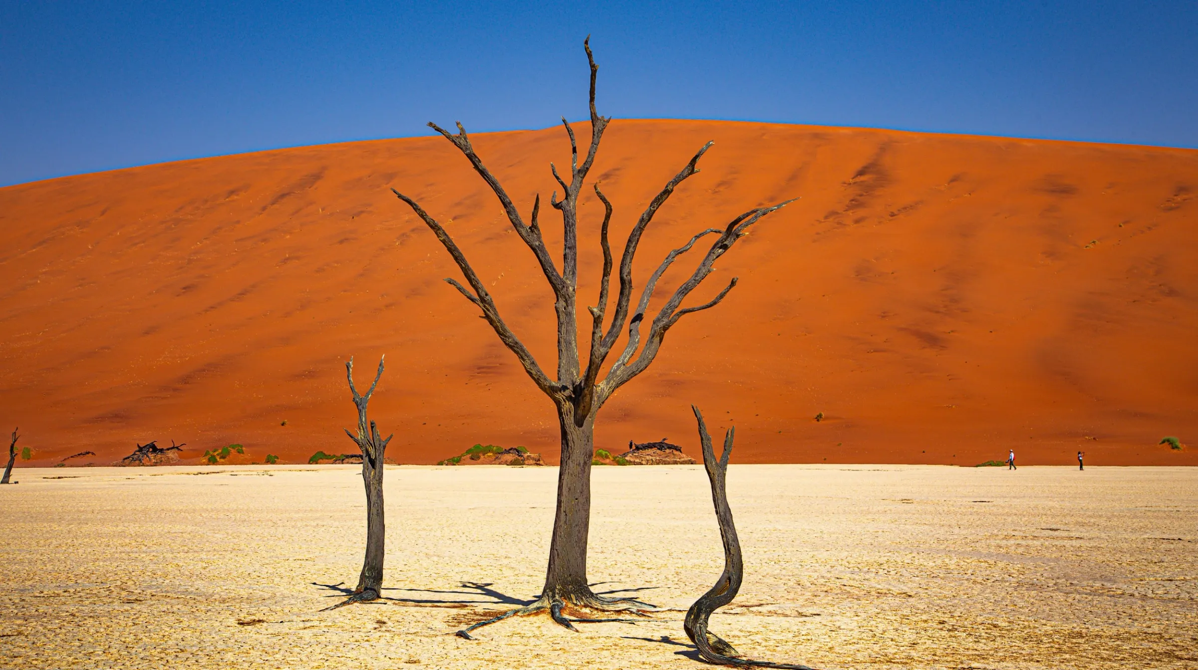 La Namibie abrite le plus vieux désert du monde : le Namib. Ses dunes de Sossusvlei comptent parmi les plus hautes de la planète, certaines atteignent plus de 300 mètres ! Au lever du soleil, elles se parent de teintes rouges et orangées spectaculaires, un décor unique au monde et l’un des sites les plus photographiés d’Afrique.