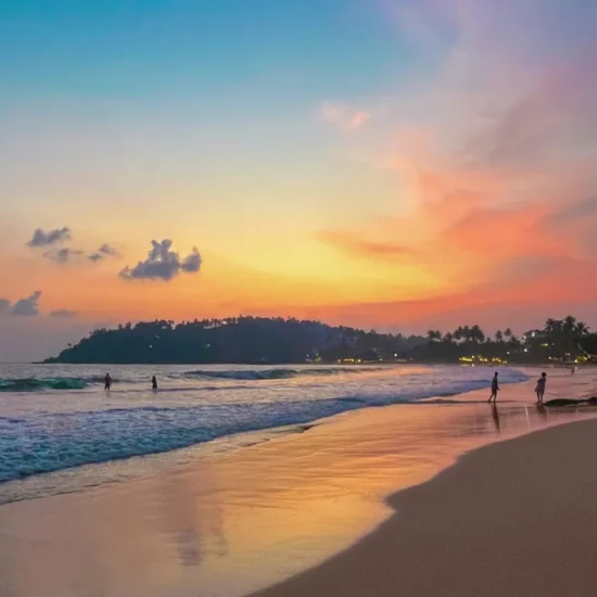La plage de Tangalle est une longue bande dorée, calme et presque vide, avec des palmiers au bord de l’eau et une mer turquoise souvent puissante. C’est un coin simple, lumineux, et encore préservé.